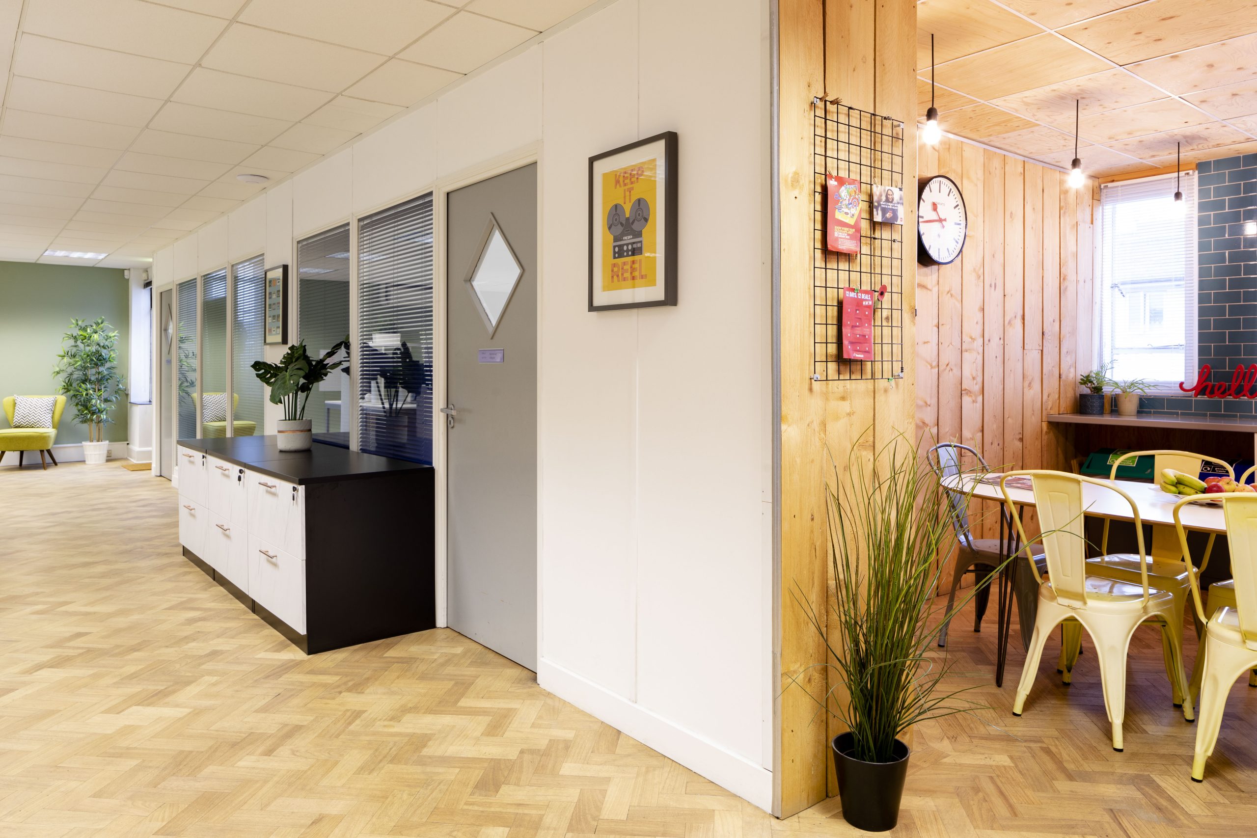 In Collaborates CoWorking space, whether you are Hot Desking or Dedicated Desking, you have access to the same amenities as our office space users. Our virtual amenities such as meeting room bookings, can be found on line. And operate on a first come first serve basis. In addition our reception areas, and fully equipped modern kitchenettes are open to all collaborate clients.